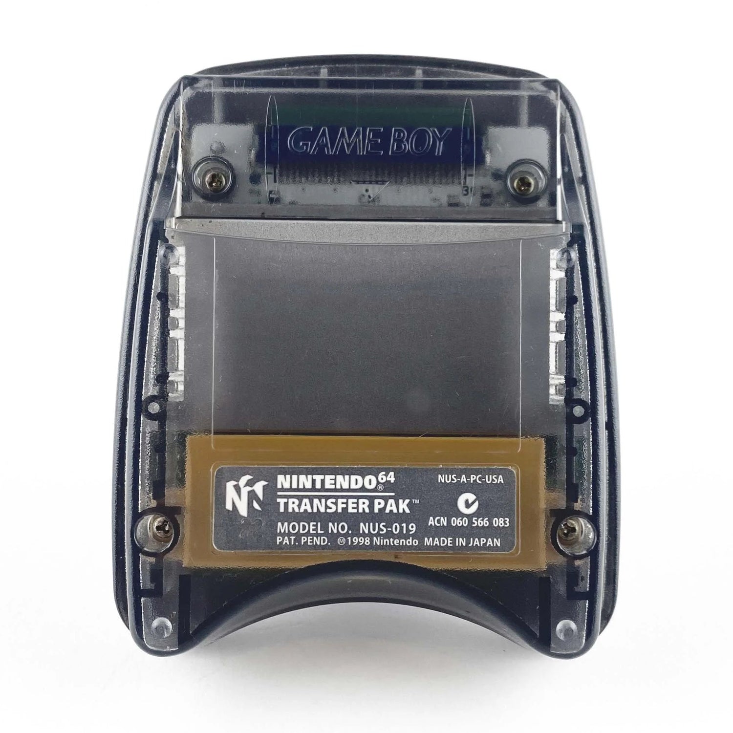 The Game Boy Transfer Pak is an official Nintendo 64 accessory that lets you connect select Game Boy and Game Boy Color games to compatible N64 titles. It plugs into the back of your N64 controller, allowing game data to transfer between handheld and console—unlocking special features, in-game bonuses, and more.